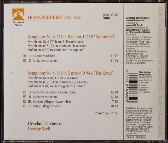 Schubert - Cleveland Orchestra - George Szell – Symphony No. 8 / Symphony No. 9