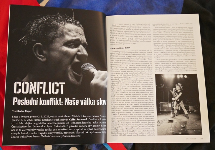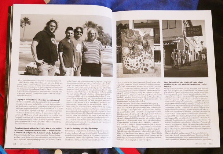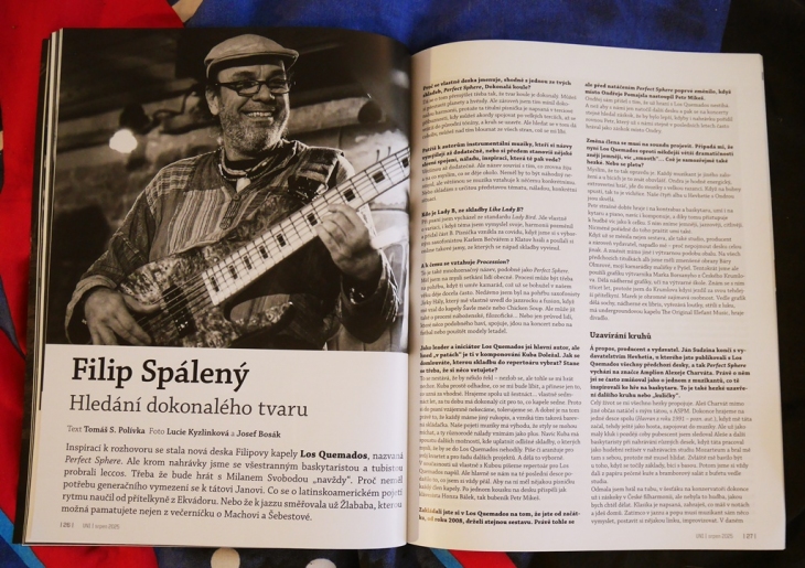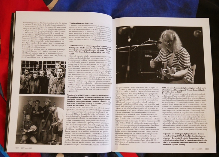 Stěžejním článkem srpnového UNI, který se váže i k obálce, je rozsáhlý rozhovor s Miroslavem Wankem, leaderem skupiny Už jsme doma, která letos slaví čtyřicet let od svého založení. Jedna část oslav už proběhla v červenci v Lucerna Music Baru, druhá se chystá na úplný konec prázdnin na oblíbený Festival nepopulární hudby Mikulov. Z dalších příspěvků upozorňujeme na rozsáhlý text o producentském vizionáři Joeu Boydovi nebo rozhovor s jazzovým tubistou a basklarinetistou Filipem Spáleným. Ve výtvarné části časopisu se zabýváme komiksem estonského kreslíře Joonase Sildrea o slavném skladateli Aarvo Partovi.