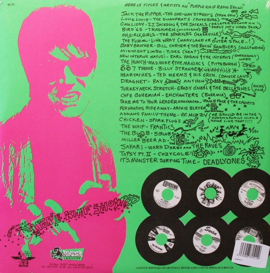 A1 The One Way Streets - Jack The Ripper A2 The Swamp Rats - Louie Louie A3 J.J. Jackson & The Jackals - O Ma Liddy A4 The Trashmen - Bird '65 A5 The Sparkles - Oh, Girls, Girls A6 Link Wray - The Fuzz B1 Bill Carter And The Rovin' Gamblers - Baby Brother B2 Tides - Midnight Limbo B3 Earl Hagan & The Interns - New Interns Watusi B4 Mad Mike And The Maniacs - The Hunch B5 Billy Strange - 007 Theme B6 Ted Weems & His Orchestra - Heartaches B7 Ray Anthony - Dragnet B8 Grady O'Neal & The Bellatones - Turkey Neck Stretch C1 Enchanters - Cafe Bohemian C2 Jam Space & The Cadets - Take Me To Your Leader Chachacha C3 Archie Bleyer - Fernandos Hideaway C4 Vic Mizzy - Addams Family Theme C5 Spark Plugs - Chicken C6 Frantics - The Whip C7 5 Blobs - The Blob C8 The Troggs - Miller Beer Ad D1 Ward Darby And The Raves - Safari D2 Cozy Cole - Topsy Pt. II D3 Deadly Ones - It's Monster Surfing Time D4 Deadly Ones - Surfin' Dock Time